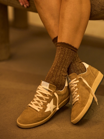 Made with a premium composition of 60% combed cotton, they offer an incredibly soft and smooth touch against the skin, providing the ideal comfort for prolonged wear during the colder seasons. Combed cotton guarantees not only a luxurious feel, but also greater resistance and durability. Polyamide (20%) adds lightness and elasticity, ensuring the socks keep their shape over time, while lurex (18%) brings a touch of delicate, sophisticated shine. Lurex creates a silver or gold glitter effect, evoking the sparkle of the spotlight and the glamour of the gala outfits worn by divas at the height of their careers. Elastane (2%) guarantees a perfect fit, providing elasticity and comfort without compromising elegance.