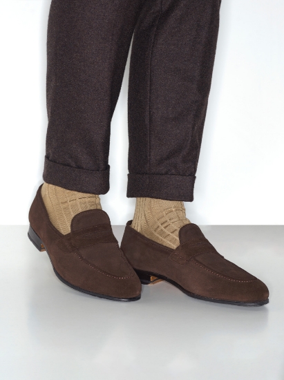 Estos calcetines están compuestos por una cuidadosa selección de materiales. El componente principal es 80% algodón mercerizado Lisle (Fil D'Ecosse), conocido por su sensación de lujo y acabado de alta calidad. La adición del 20% de poliamida mejora la durabilidad y longevidad de los calcetines, asegurando que resistirán el paso del tiempo.